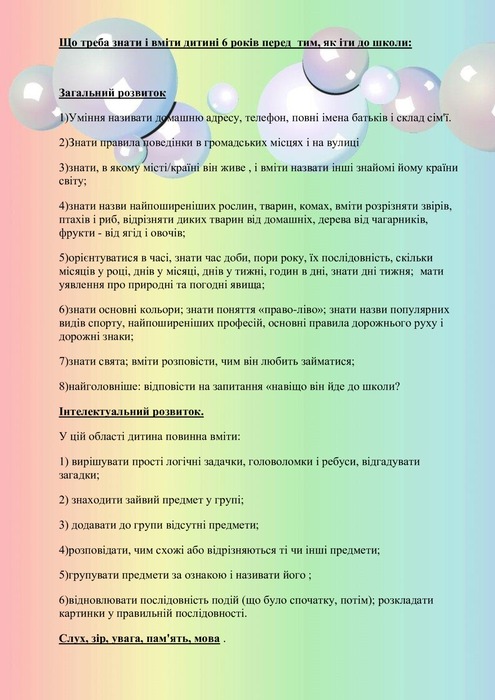 Знання кольорів, форм і основних цифр. · Рахунок до 10 або навіть далі. · Уміння складати прості пазли. · Складання простих історій або казок.