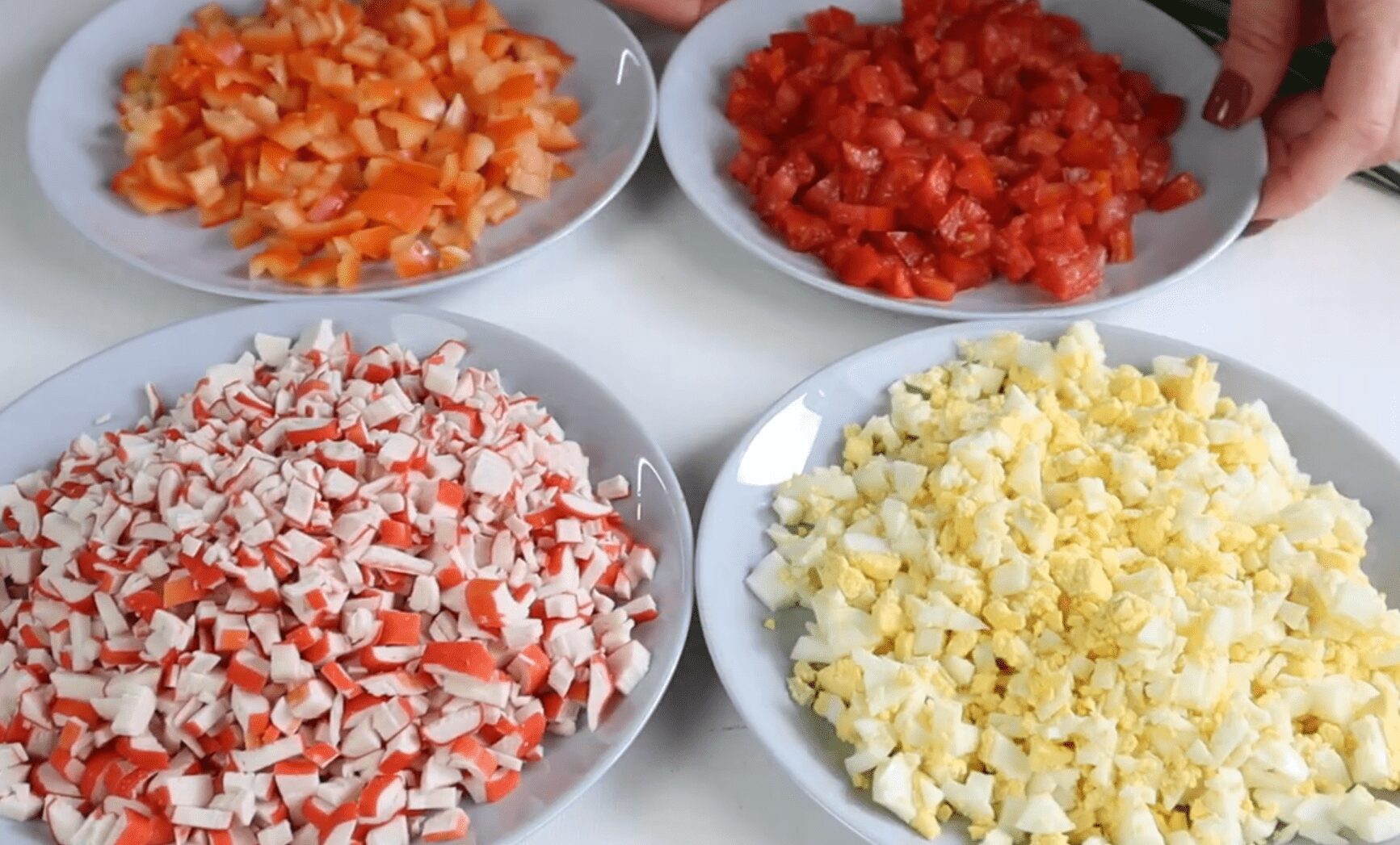 Великий вибір смачних домашніх рецептів ‘помідори і крабові палички салат’: салат з крабових паличок і мівіни, фаршировані крабові палички.