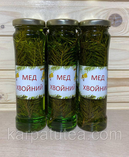 Опис Ароматний натуральний продукт на основі хвойних рослин, з характерним смолистим смаком і насиченим лісовим ароматом. Виготовляється вручну з молодих соснових або ялинових пагонів шляхом повільного варіння з цукром. Продукт має густу консистенцію і приємну терпкість у післясмаку.