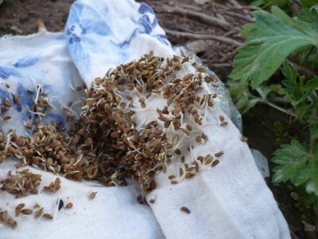 Для того, щоб виростити петрушку швидше, потрібно позбутись ефірної олії з поверхні насіння. Загорніть насіння петрушки у тканину або полотняні мішечки і опустіть у посуд з горілкою. Замочуйте насіння не довше 10 хв, щоб не пошкодити шкірку. Після замочування промийте загорнене насіння під водою.