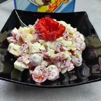 цукру (щоб забрати кислоту з помідор) • зелені помідорки • свіжий базилік • бринза • велика цибулина • маленькі болгарські перці • свіжого кропу • яєць …