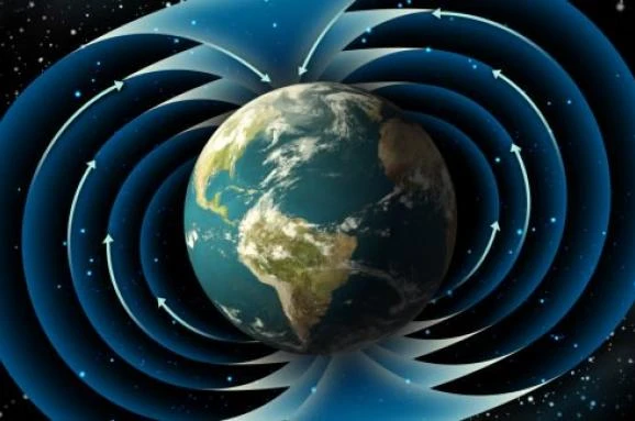 🌌✨ Магнітне поле Землі виникає внаслідок руху рідкого металу в ядрі Землі. 🔄 Воно тягнеться далеко за межі атмосфери, утворюючи магнітосферу. 🔵🌐 Магнітосфера захищає Землю від сонячного вітру, відводячи його заряджені частинки в сторони.