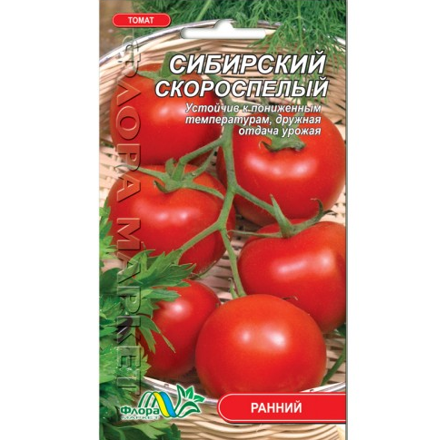 Томат Сибірський Скоростиглий – ранній кущовий сорт, який користується заслуженою повагою серед фермерів і дачників. Підходить для посадки у відкритий і закритий ґрунт. Рослина детермінантна, з невеликою кількістю листя, з хорошою енергією зростання. Стресостійка та невибаглива до умов вирощування.