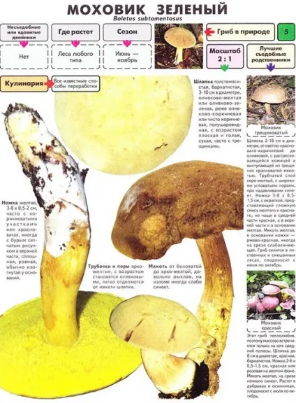 Зовні ці «помилкові» гриби можна легко відрізнити за нехарактерному для моховиков білому, брудно-рожевого або світло-коричневого трубчастого шару, почервоніння …