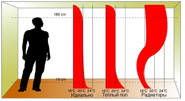 Для людини найбільш комфортними є умови, коли тепло поверхні підлоги становить 22о – 25о С, а тепло повітря на рівні голови 19 – 20 С.