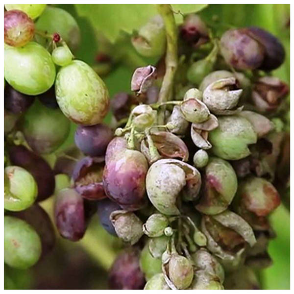 Уражені суцвіття відмирають, рано заражені ягоди висихають, а ягоди розміром з горошину лопаються і руйнуються цвілевих грибами або висихають в суху погоду. Ої …